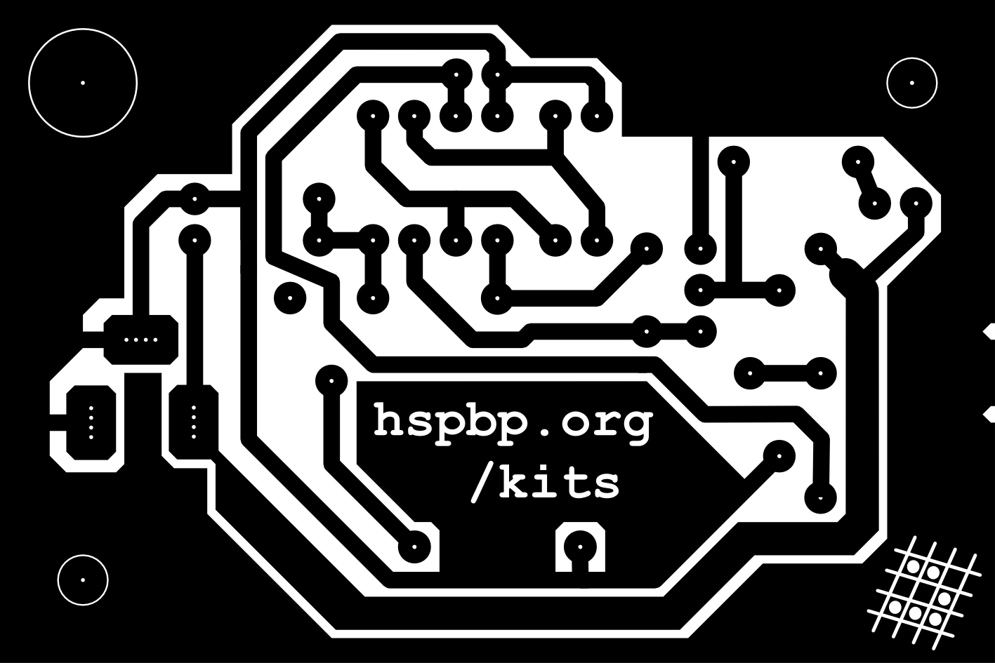 - Attól, hogy kész a NYÁK, még lehet alternatív designt adni neki. Én már tettem rá glidert és honlap-címet, de a projekt ettől függetlenül maximálisan nyitott a kreativitásra. Az inkscape-svg forrás itt található. (Renderelni úgy lehet, hogy a fólia-réteg átlátszóságát 100%-ra kell venni, a többi réteget elrejteni, és File/Export menü.)