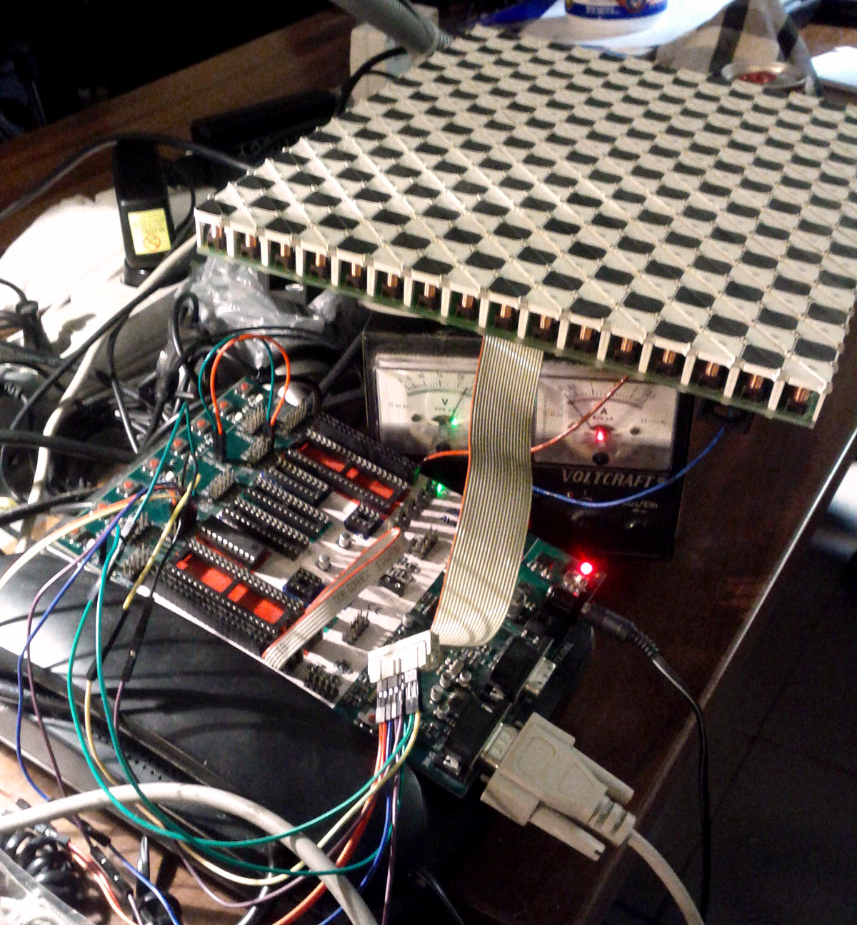 - 0001rrrr dddddddd dddddddd dddddddd (4 bytes) writes the data in d bits to column r (0-15), ACKs with ASCII "R" when ready ("0" bits in the data will turn to white, "1" bits are left in their current state)